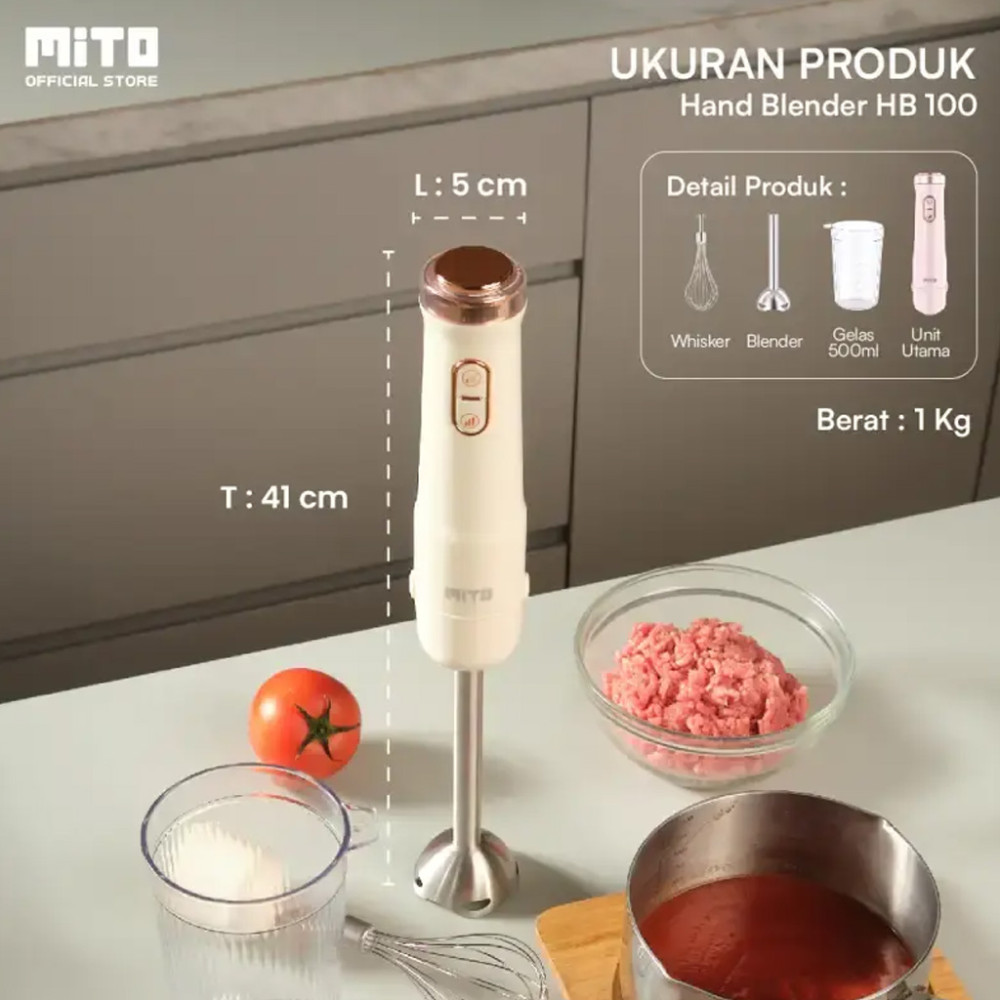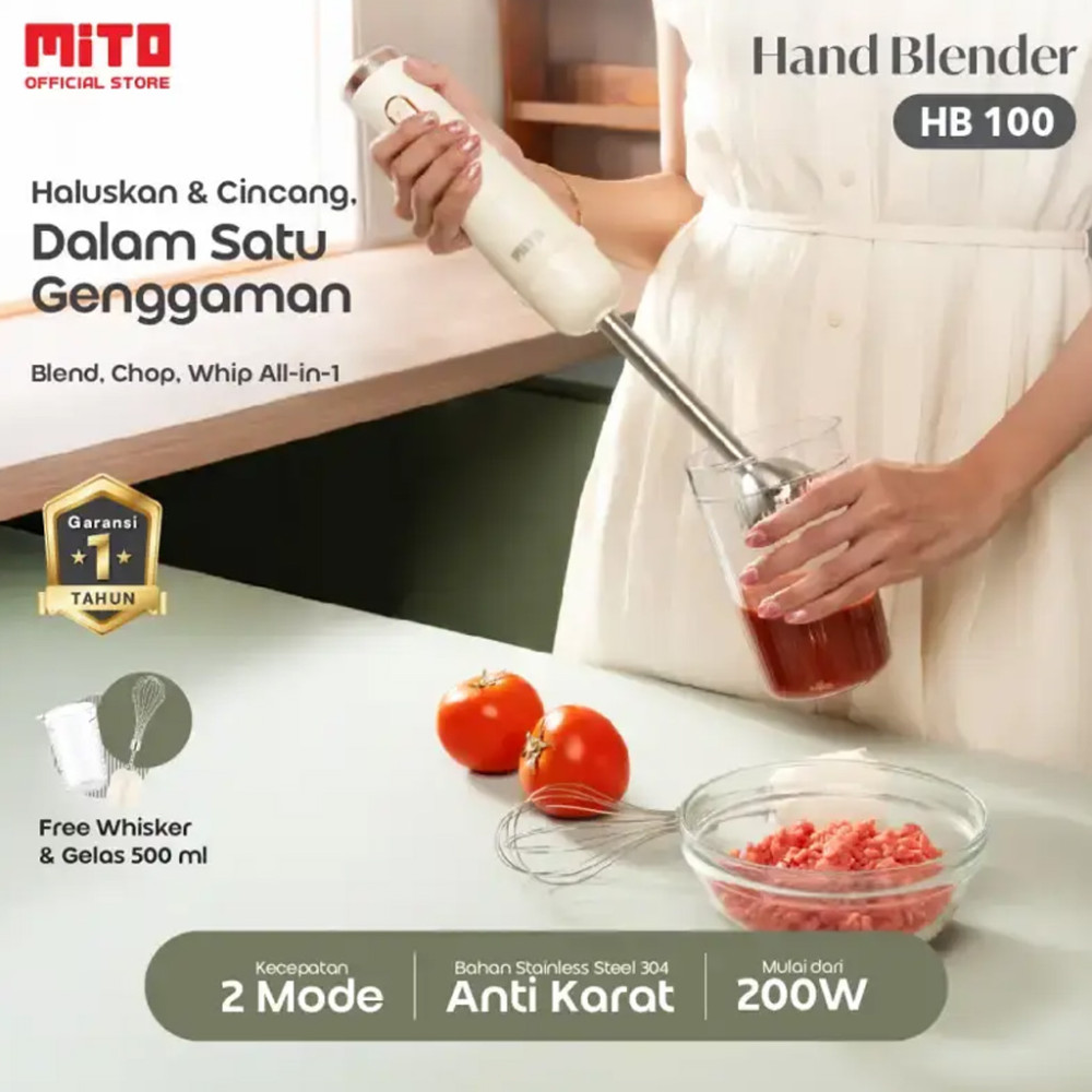 MITOCHIBA HAND BLENDER HB 100. Pahlawan dapur yang bikin masakan sat set! Bener kan Kak, kalau ada yang simpel, kenapa pilih yang ribet? Blender panjang ini solusinya, anti tumpah dan nggak perlu wadah besar. Dijamin nggak bikin repot Horeca Kakak!