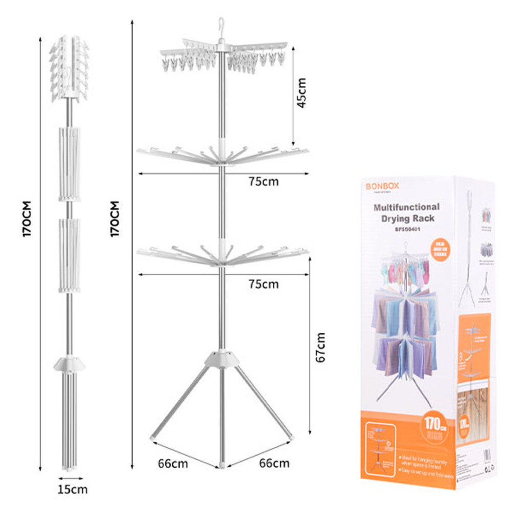 Kenalan sama BONBOX, rak jemuran vertikal 3 lapis yang bikin proses mengeringkan jauh lebih efisien. Tinggal putar, jepit, dan voila! Hemat ruang, hemat waktu, hati pun senang.