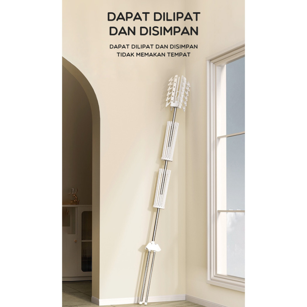1. Tinggi total 170 CM! Kapasitas super besar, muat menjemur baju bayi, handuk, sampai selimut tipis. Semua cucian terorganisir di rak yang berbeda.