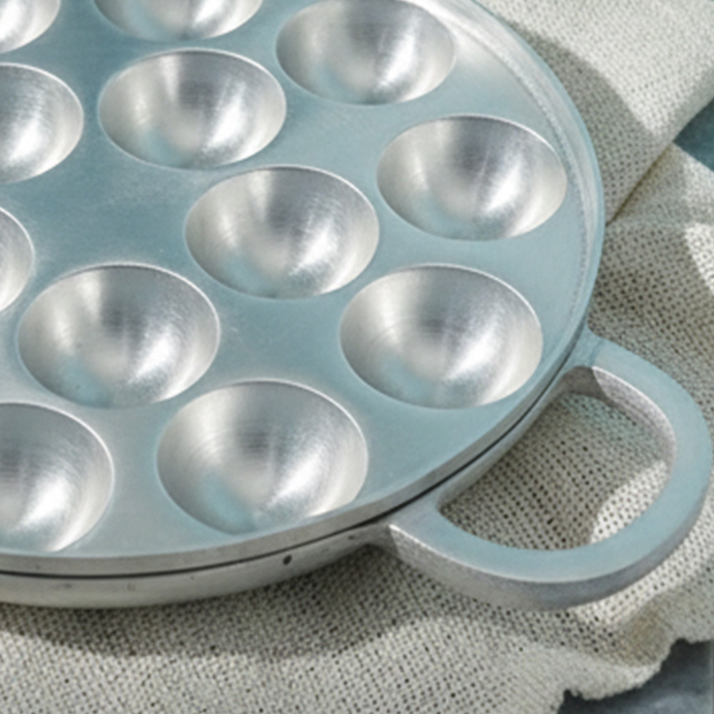 4. Material aluminium tebal berkualitas, distribusi panas merata. Takoyaki matang sempurna luar dalam.