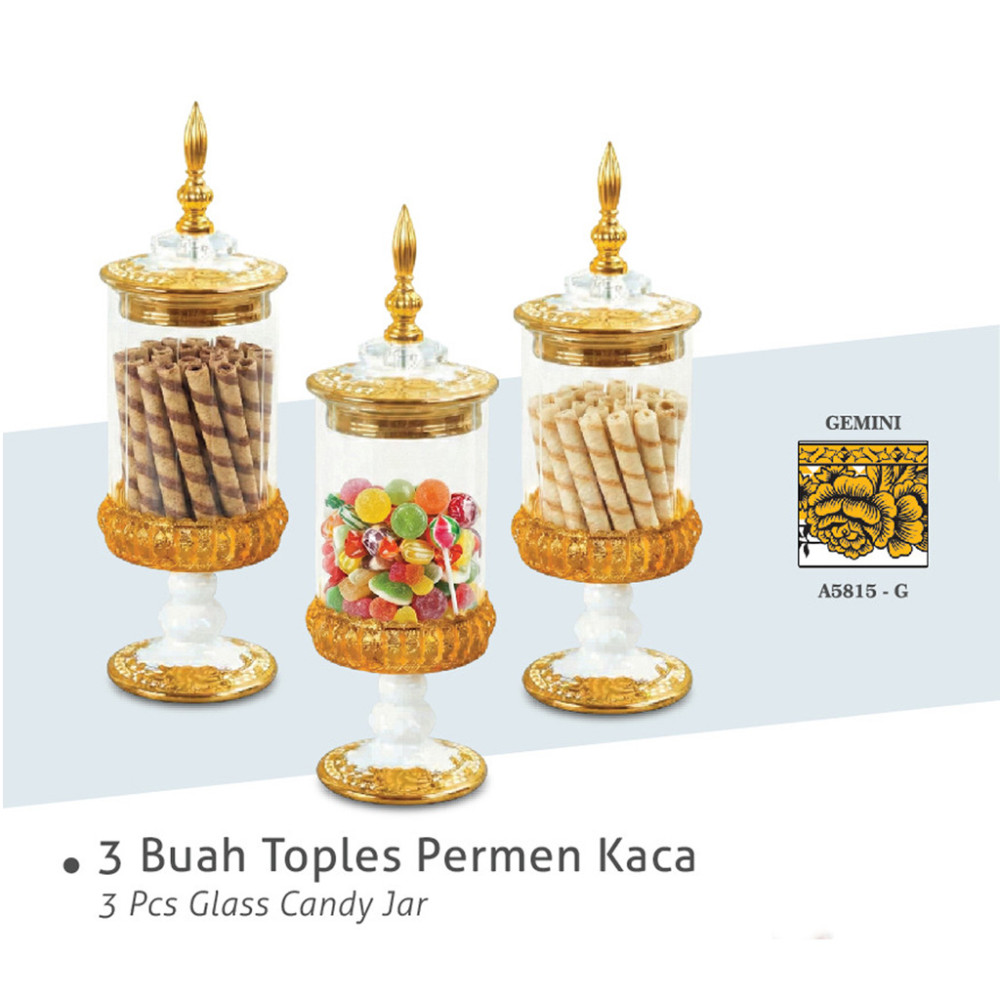 Stop pakai toples plastik yang bikin meja ruang tamu kelihatan ‘biasa’ aja! Kalau mau level up, pakai set toples sultan ini dong, Kak! Cemilan auto estetik. ✨