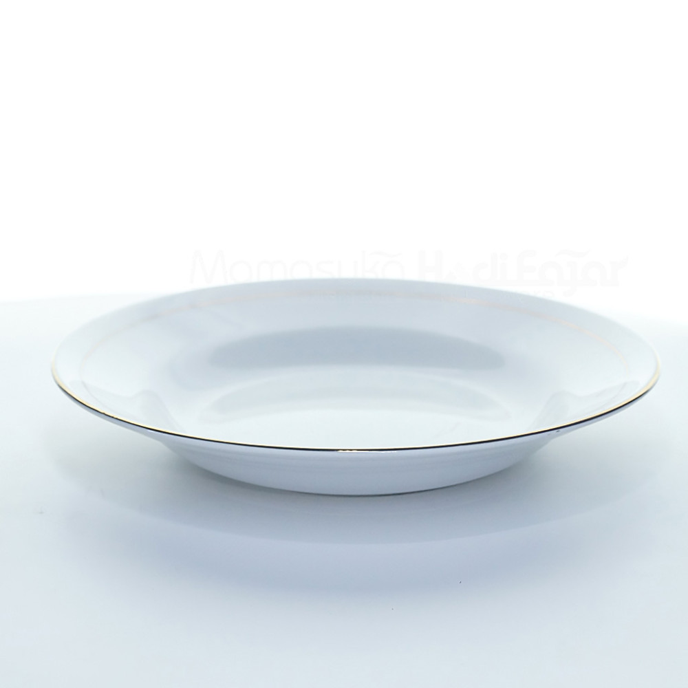 3. Desain bibir piring yang lebar dan cekungan dangkal, sempurna menahan kuah atau saus agar presentasi makanan tetap rapi.