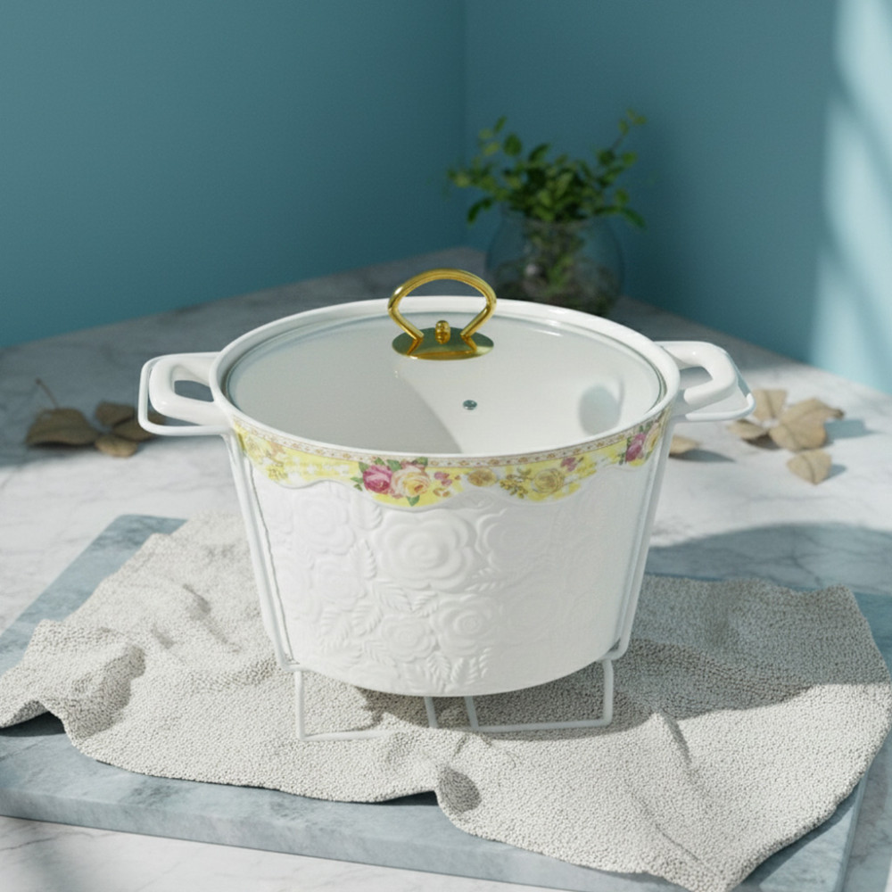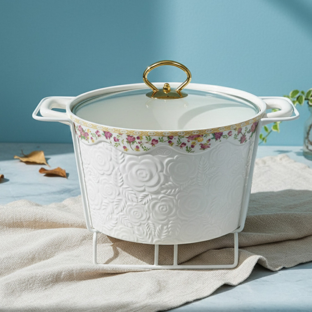 1. Material wadah full porcelain premium dengan ukiran bunga mawar timbul (3D), super cantik dan membuat hidangan terlihat mahal.