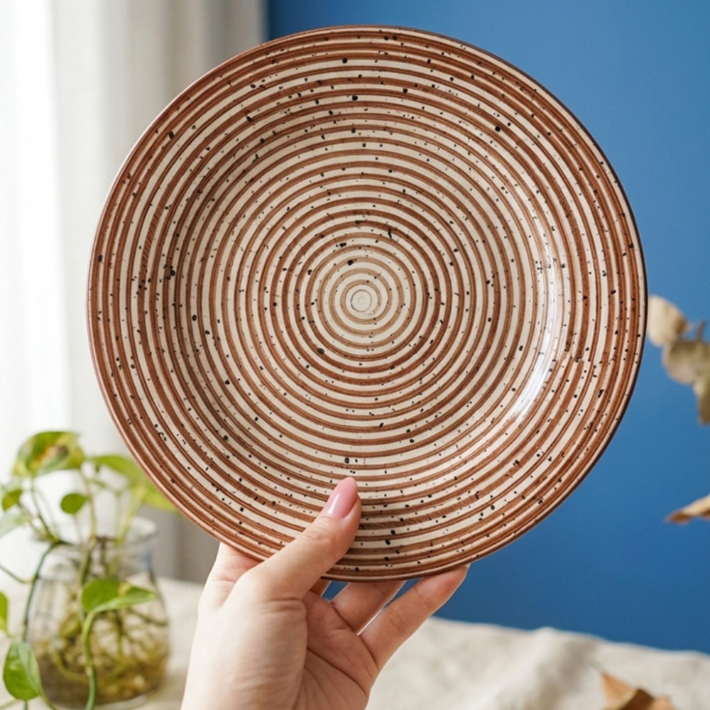 Ukurannya yang super lega (27 cm) bikin piring ini multifungsi banget, bisa buat steak, main course, atau piring saji tengah meja. Bahannya keramik berkualitas yang aman banget buat kesehatan karena sudah SNI. Warna cokelat naturalnya bikin makanan terlihat lebih hangat dan premium. Cocok banget buat kakak yang hobi foto makanan buat update di medsos! πΈπ₯