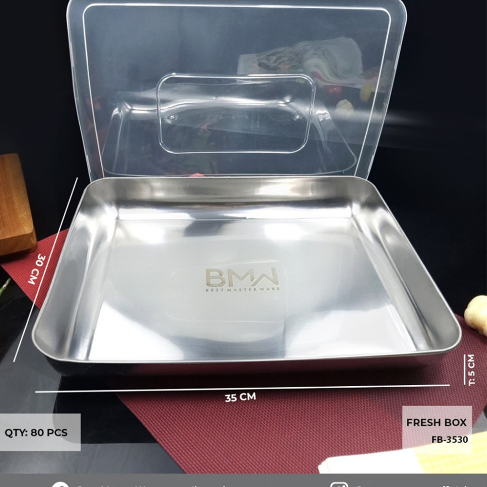 2. Ukuran super fungsional: Panjang 35 CM, Lebar 30 CM, dan Tinggi 5 CM. Cukup tebal untuk menyimpan porsi besar, tapi tetap ramping.
