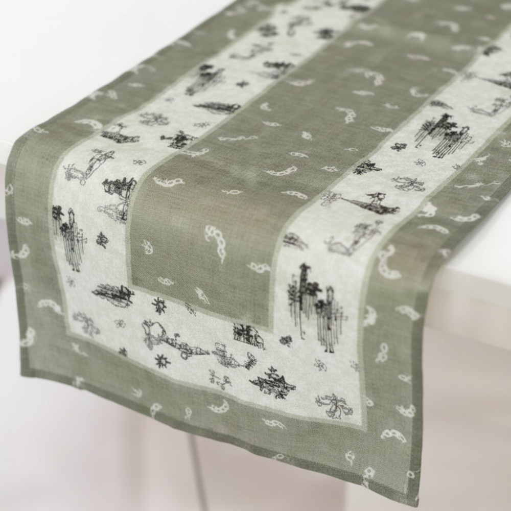 3. Motif abstrak alam dan warna sage green yang kalem, bikin suasana makan jadi lebih *chic* dan menenangkan. Desainnya elegan, nggak norak. 🌲