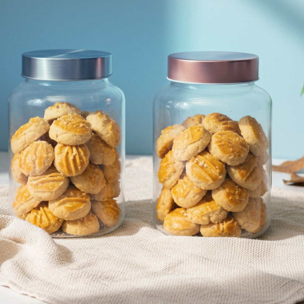 1. Material Kaca Premium: Awet, bening, dan higienis buat simpan makanan atau bahan baku. Dijamin nggak nyesel! 👍
