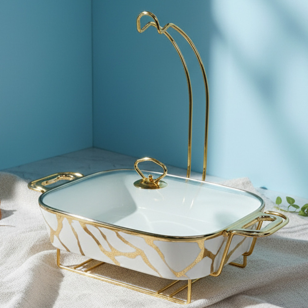 5. Sudah termasuk Gold Metal Stand elegan, makanan auto hangat dan tampil lebih tinggi di atas meja.