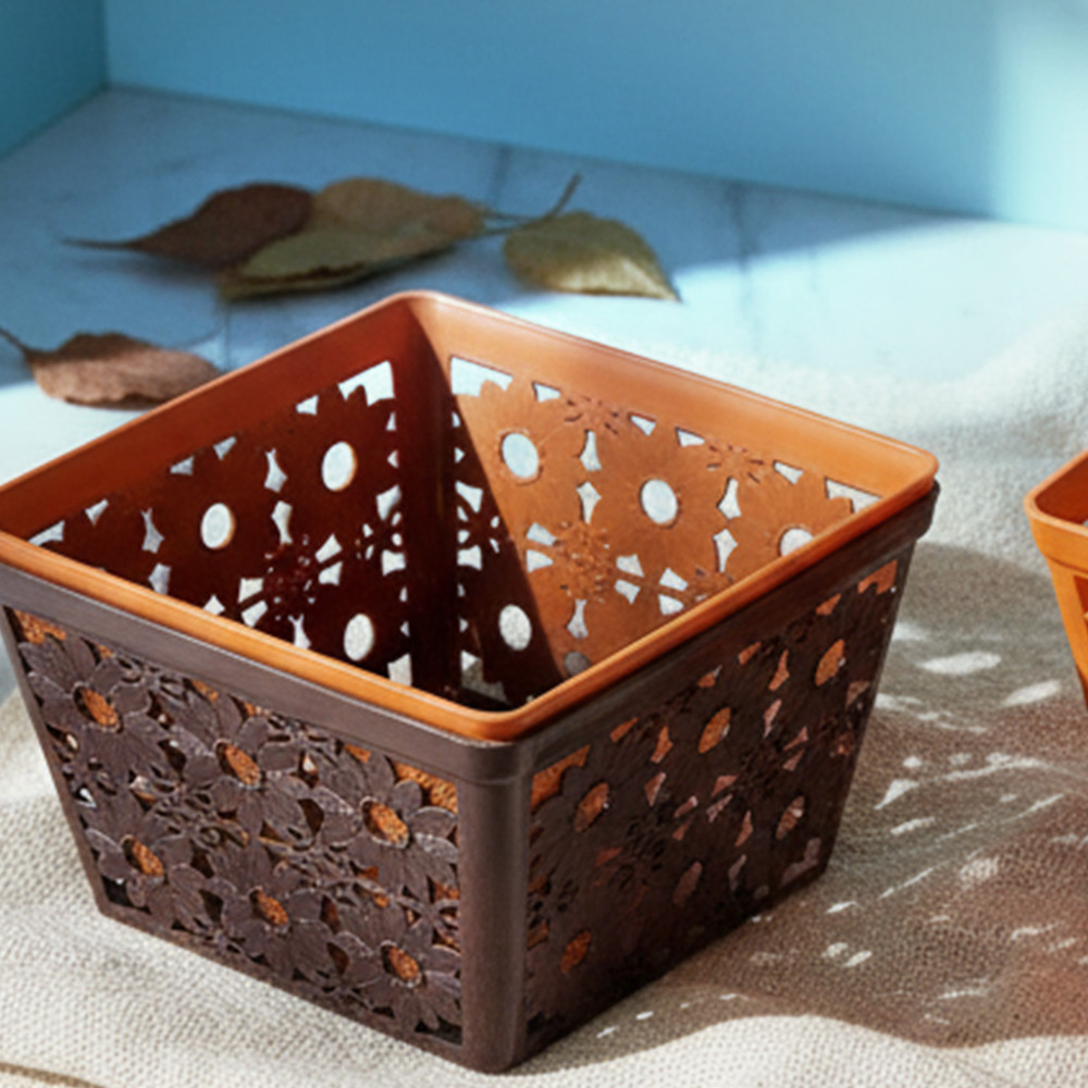 3. Warna (Cokelat / Oranye) dengan lubang ventilasi motif bunga yang elegan.