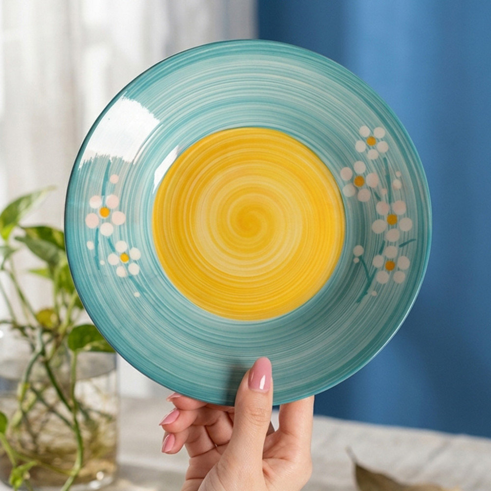 FORMIA PIRING HABANERA BLUE 9 hadir membawa kesempurnaan dalam kemewahan langsung ke meja makan Kakak! 🌊 Piring makan berkelas ini memiliki desain spiral gradasi warna biru laut yang menenangkan dengan pusat warna kuning matahari yang cerah, dipercantik motif bunga putih yang artistik. Ihh anoying banget deh kak kalau plating makanan sudah niat tapi piringnya polosan aja, mending pakai koleksi Habanera ini biar setiap hidangan jadi kelihatan lebih mewah bak di resort bintang lima! ✨