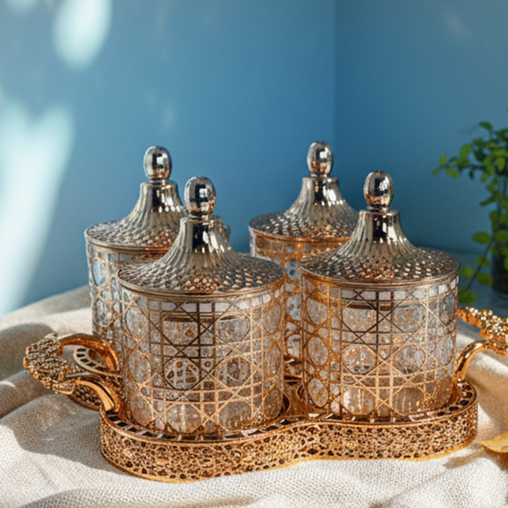 2. Satu set langsung dapat 4 toples kaca berukir lengkap dengan nampan serving premium. Praktis banget dan hemat, iya kan kak??