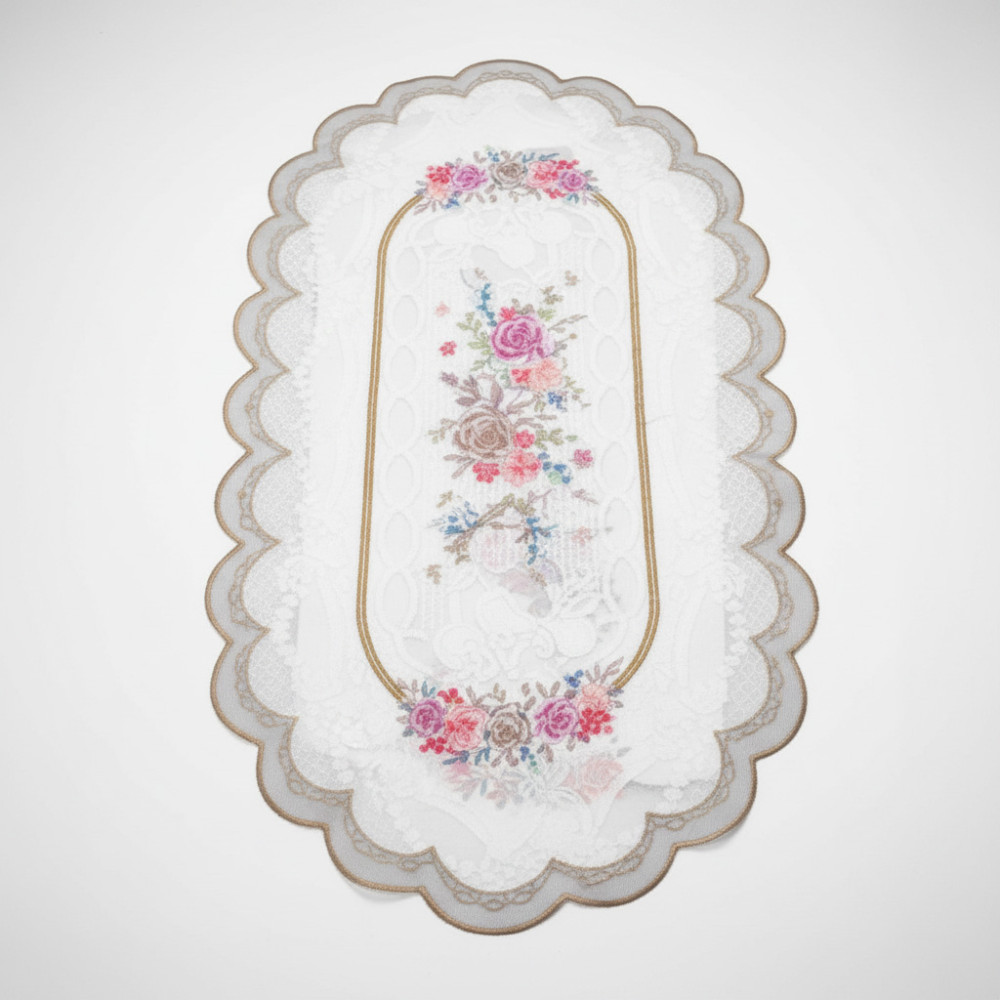 Taplak meja runner ini bukan sekadar alas, Kak. Ini statement elegan untuk meja makan atau prasmanan Horeka/rumah Kakak. Desain floral vintage dan renda scallop-nya bikin meja auto-mewah. "Ih, anoying banget deh Kak kalau udah mahal-mahal beli taplak, eh malah keliatan biasa aja," iya kan Kak? Betul kan Kak? 💐