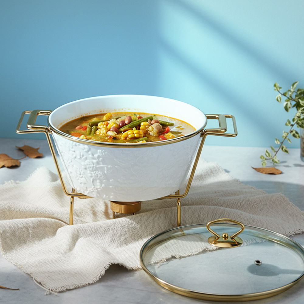 Siapa bilang alat penghangat makanan harus B aja? Ini nih, solusi tampilan mewah yang bikin tamu Kakak OTW bilang "Waah, piringnya cantik amat!" 😂. Betul kan kak? Cocok buat hidangan prasmanan spesial, arisan, atau Horeka kelas atas!