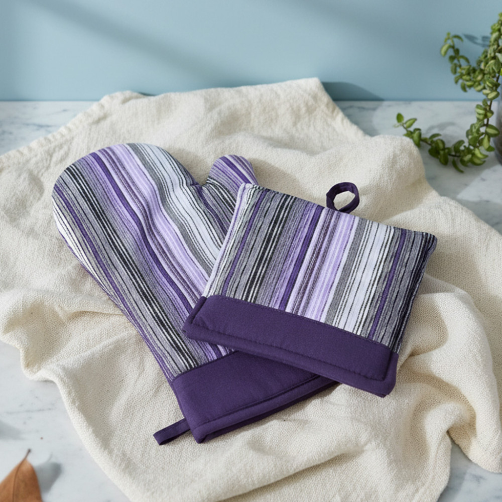 1. Set lengkap 2-in-1: Sarung Tangan Oven (Oven Mitt) dan Tatakan Panci (Pot Holder). Perlindungan ganda, aman dari wajan yang lagi "emosi".