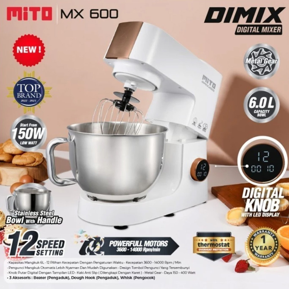 Ihh anoying banget deh Kak, kalau lagi semangat baking, tiba-tiba listrik rumah jeglek? Tenang! Mixer sultan MITO MX 600 ini solusinya. Desainnya elegan, low watt, cocok buat Kakak pebisnis Horeca maupun ibu rumah tangga yang mau naik kelas tanpa takut tagihan listrik melunjak. Bener kan Kak, tampilan mixer juga menentukan mood bikin kue? ✨