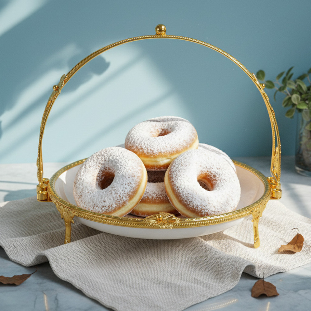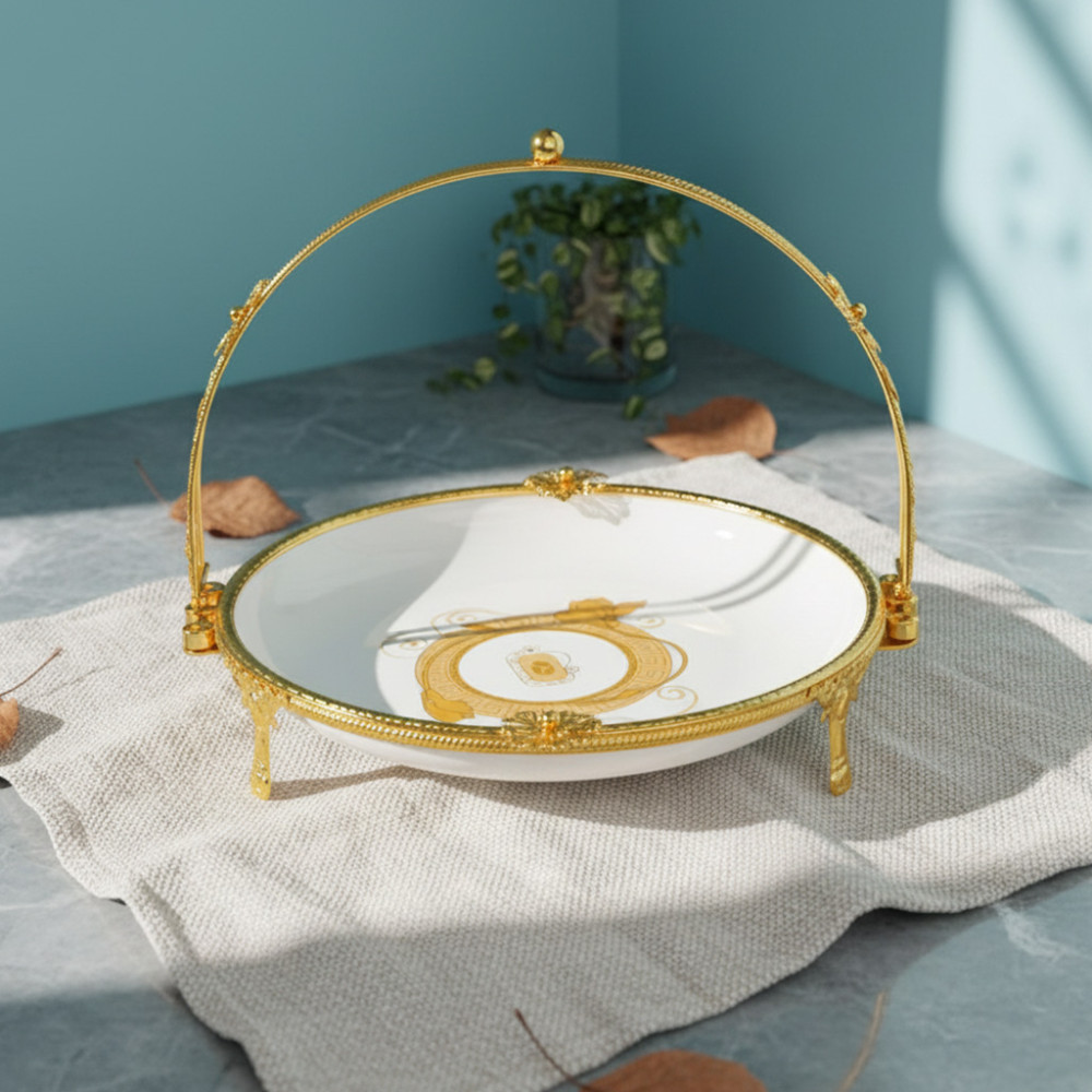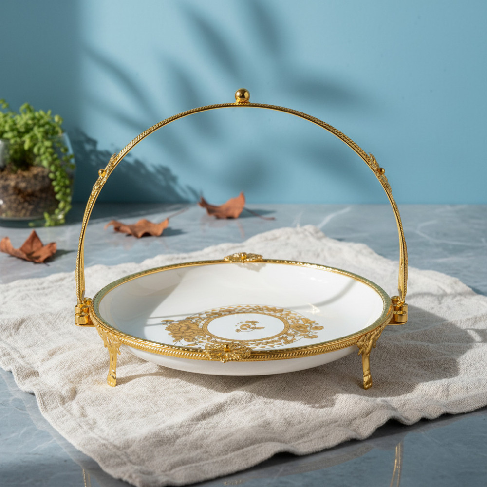 4. Piring keramik putih dengan dekorasi gold-print ala Eropa, wajib ada di meja saat jamuan atau di display Horeka Anda. Cocok untuk high tea atau keranjang buah. ✨