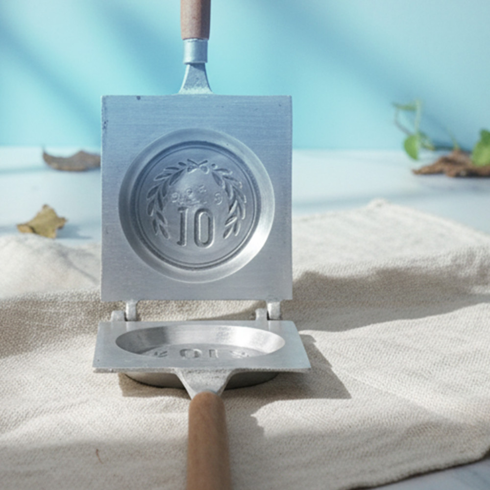 2. Cetakan Single Isi 1, desain clamshell (engsel tengah) yang praktis, memastikan kue matang merata tanpa drama gosong sebagian.