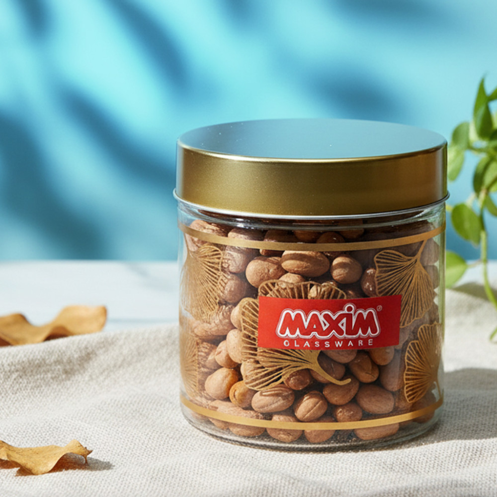 Toples bening biasa? Ihh anoying banget deh Kak kalau cuma polos! Toples Maxim ini datang dengan motif daun emas yang super elegan, bikin bumbu dapur atau kue kering kamu jadi pajangan estetik. Bener kan Kak, kalau toplesnya cakep, semangat masaknya juga naik! Cocok buat Kakak yang punya kafe atau yang suka koleksi toples gemoy di rumah. 🤩